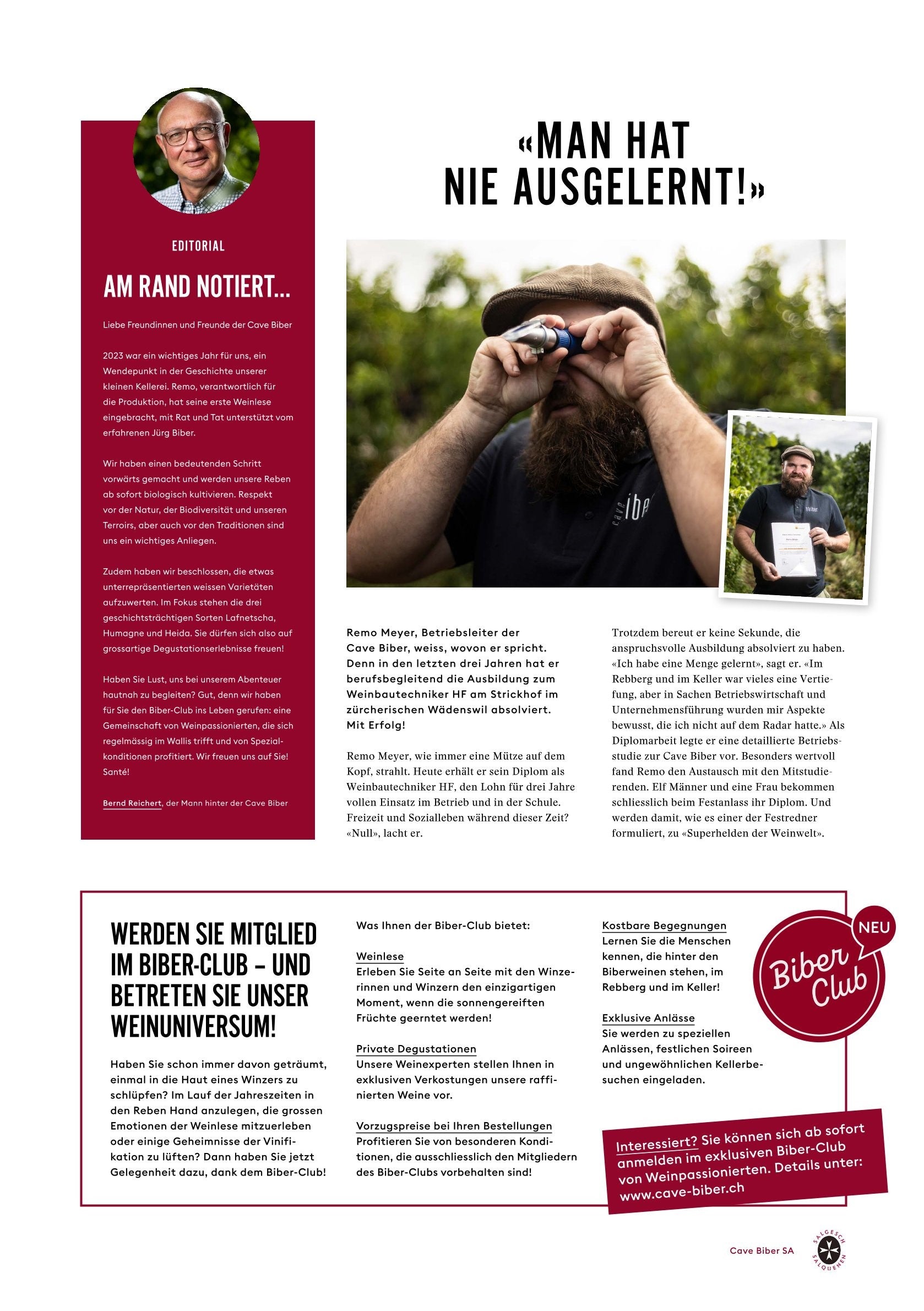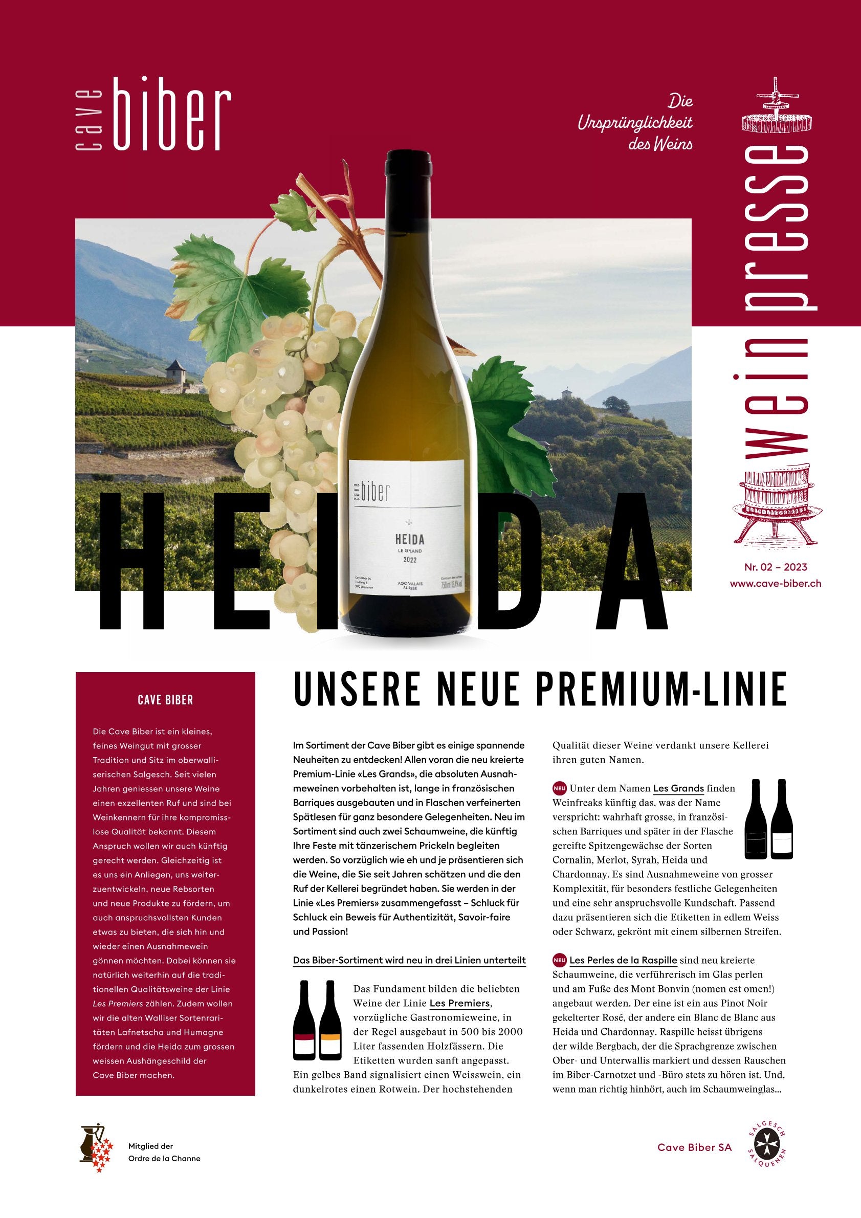 Die schriftliche Weinpresse von Cave Biber ist das Konzentrat, welches sich nicht in die Flasche abfüllen lässt, sondern als Periodikum für die Abonnenten des Newsletters, Kunden und andere Interessierte in schriftlicher Form erscheint.